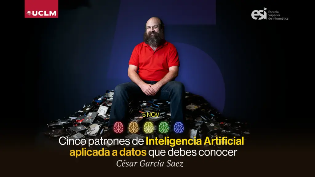 El 5 de noviembre se reanudará el ciclo de conferencias de otoño 2025 en la ESI. Nos visitará César García Saez, experto en Inteligencia Artificial en el departamento de Sistemas de Informática del Ayuntamiento de Madrid. El título de la charla es «Cinco patrones de Inteligencia Artificial aplicada a datos que debes conocer» y será a las 11.30h en el salón de actos Alan Turing.