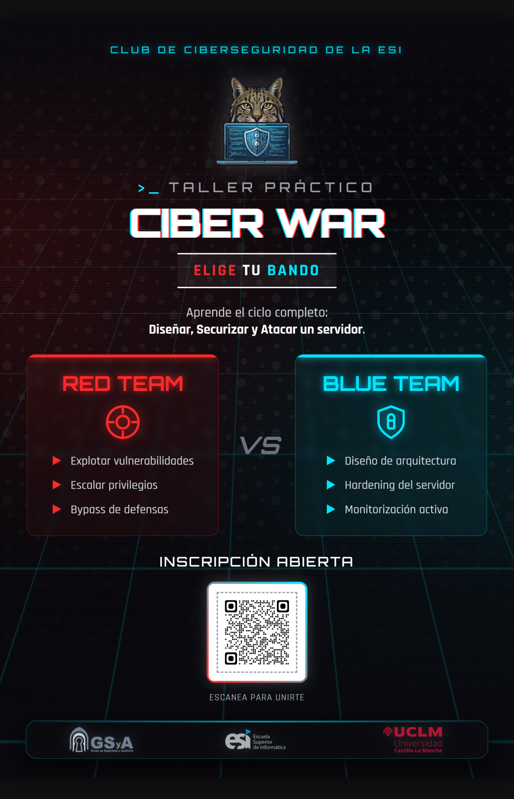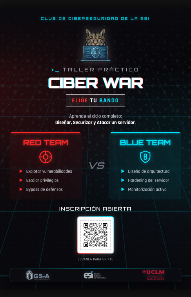 📍 Organizado por el Club de Ciberseguridad de la ESI en el laboratorio del grupo de investigación GSyA – Inscripción